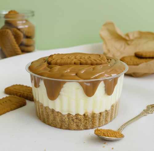 Indulge in our Biscoff Cheesecake Cup, a decadent fusion of creamy, velvety cheesecake layered over a crunchy Lotus Biscoff biscuit base. Topped with a luscious swirl of cookie butter spread and finished with a signature biscuit crumble, it’s the perfect balance of caramel sweetness and spice in every spoonful.