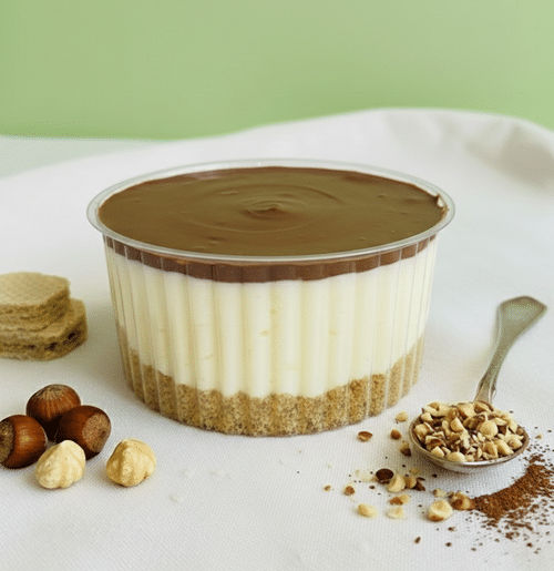 Treat yourself to our Hazelnut Cheesecake Cup, a twist on a classic favorite. Featuring a buttery crust and velvety cream cheese infused with rich hazelnut paste layer. This elegant, portable dessert offers the perfect crunch and creamy finish.