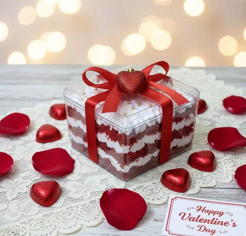 Unwrap romance with our red velvet Valentine’s Cake Box, a curated collection of artisanal treats.